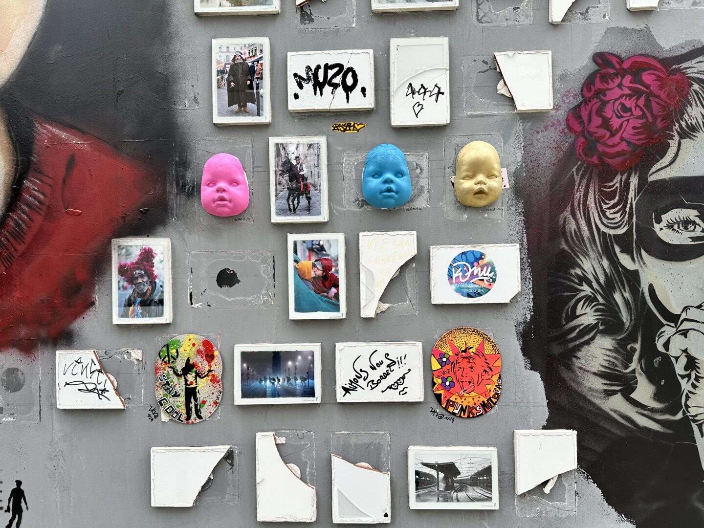 « FOLLOW YOU FOLLOW ME » « Pink, Blue or money! » collage plâtre, spay paint : pink, blue and gold. McGM.19. Paris 13. Février 2024.