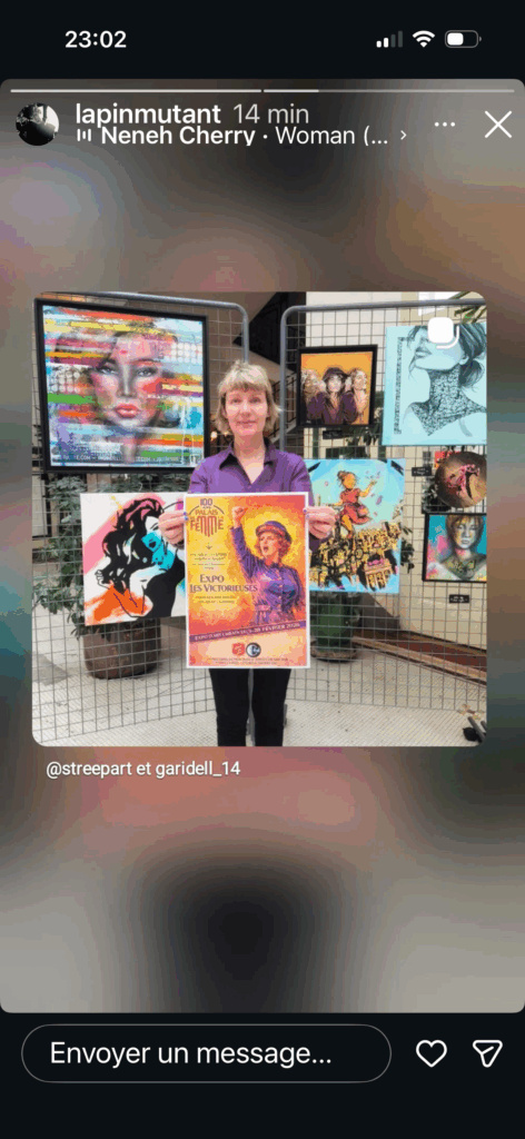 EXPOSITION  « LES VICTORIEUSES  » en lien avec le livre de LAETITIA COLOMBANI. ORGANISÉE PAR GARIDELL14.Commissaire d’exposition Particia Bennech Leroux . Galerie d’art urbain itinérante féministe. Expositions & Fresques. Valoriser les artistes femmes d’art urbain . Favoriser l’accès à l’art pour toustes. Toute action en faveur des femmes et des filles.