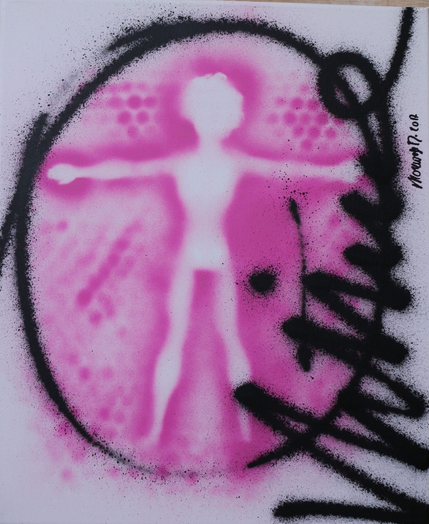 « KENVITRUVE ». « PINK ». Spray paint sur toile. 38 x 46. 2017